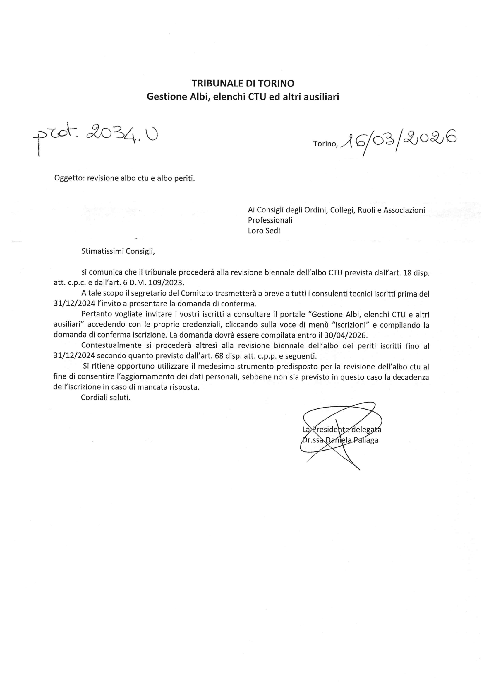 Avvio revisione biennale degli Albi CTU e Periti (Scadenza 30/04/2026)